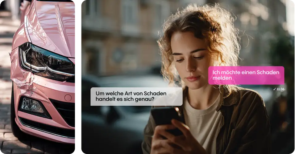 Ermögliche deinen Kunden, Schadensfälle einfach per Chat oder Telefon zu melden – mit sicherer Authentifizierung, Dokumentenupload und sofortiger Statusbestätigung.