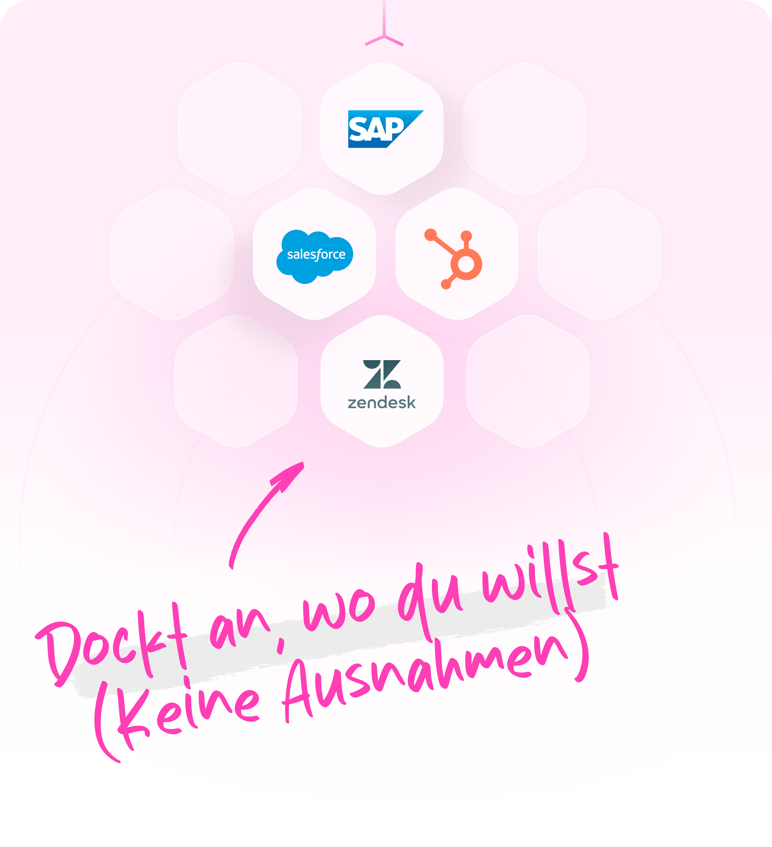 Die Integration mit CRMs, ERPs und Ticketsystemen geht schnell und effizient, solange deine Infrastruktur bereit ist.