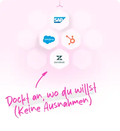 Die Integration mit CRMs, ERPs und Ticketsystemen geht schnell und effizient, solange deine Infrastruktur bereit ist.