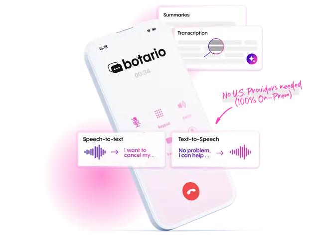 botario supports integration with leading speech technology providers, as well as our own in-house-developed STT and TTS solutions, giving you maximum flexibility and independence from U.S.-based platforms.